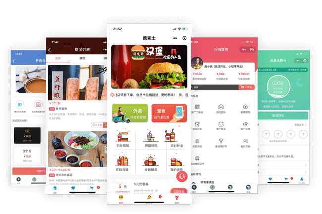全民推送、自定义表单、自助买单、商品三级分销、票券卡包、线下核销、步数精灵、 储值卡、会员卡、会员积分、砍价、积分抵现、在线桌台、无线打印机。